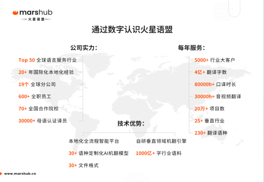 自2002年成立至今,火星語盟始終踐行“讓天下沒有難溝通的語言”的使命,致力於為全球客戶提供精准、高效、便捷的本地化解決方案。